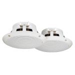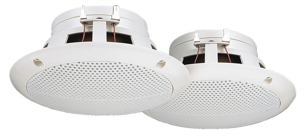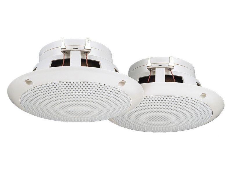 Dvojica podomietkových reproduktorov, koaxiálny systém, 8 Ω, výškový reproduktor s ferrofluidom. Odolné voči vlhku Biely jednodielny plastový dizajn a plastový kužeľ Univerzálne využitie pre autorádiá, PA, terasu, loď