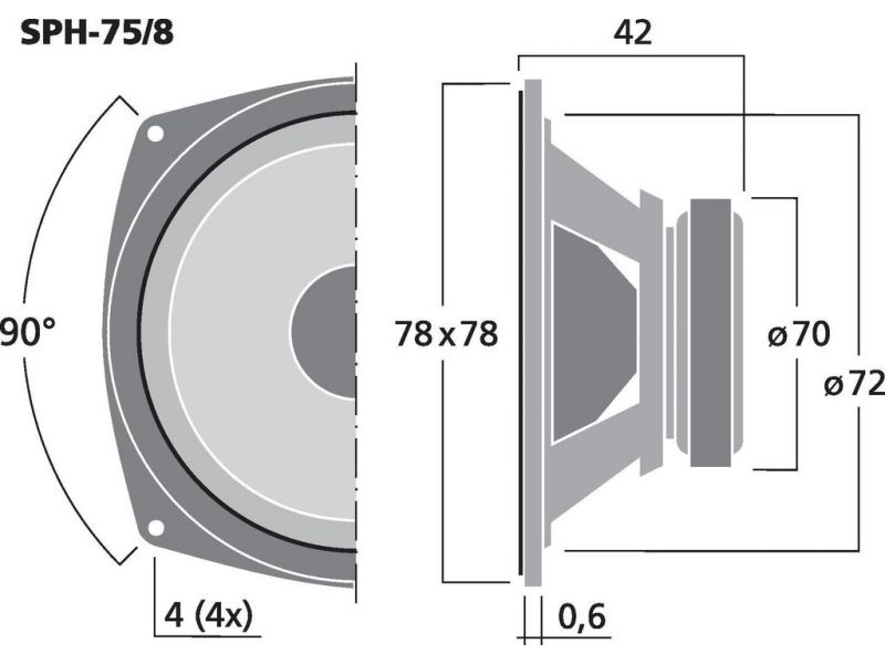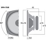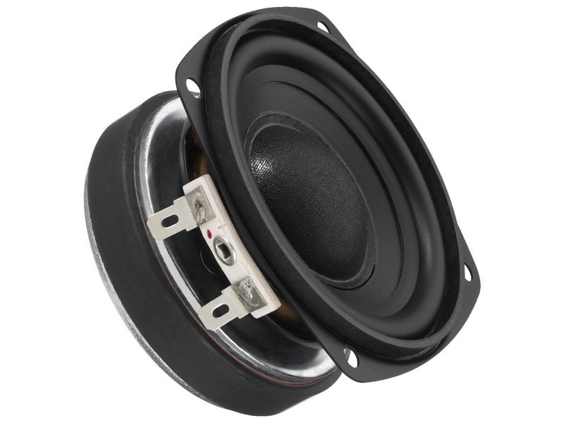 Miniatúrny hi-fi stredobasový reproduktor, 15 W, 8 Ω Polypropylénový kužeľ Gumový rám Vyvŕtané pólové jadro pre mimoriadne vysokú kapacituPre veľmi malé reproduktorové systémy, napr. priestorové reproduktory