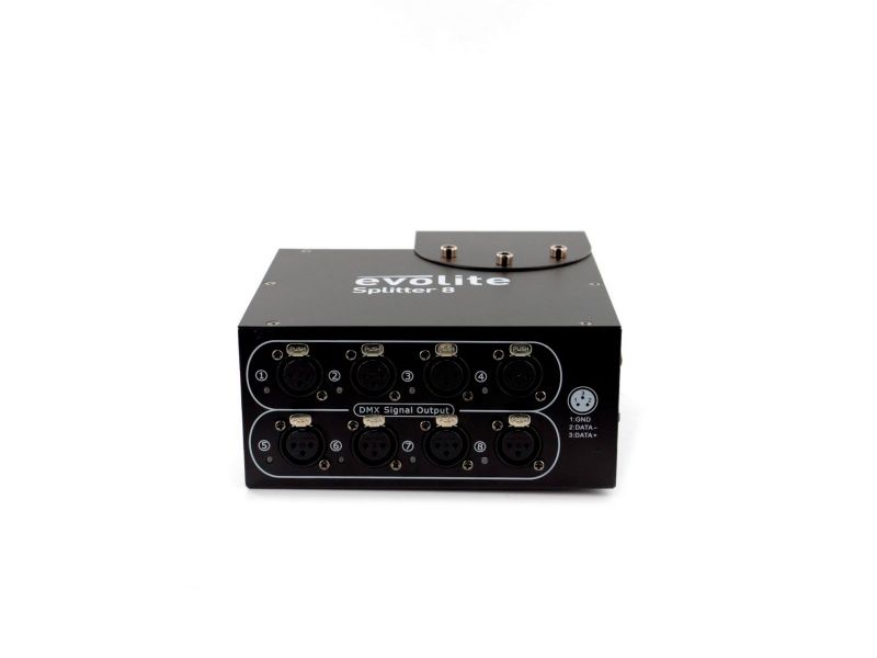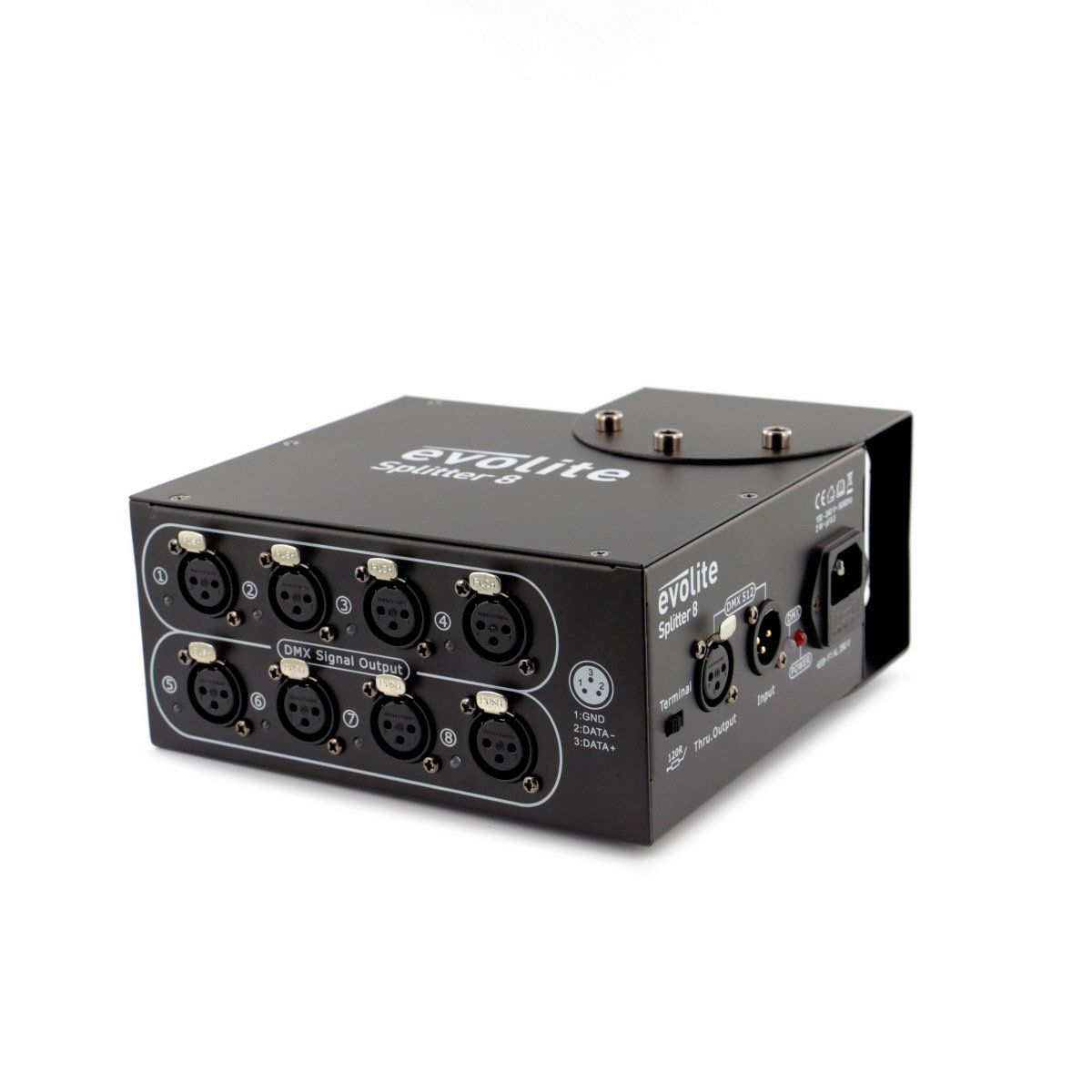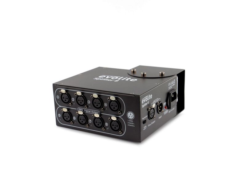 DMX signal distributor with signal amplifier1 input and 8 outputsAll outputs are isolated from the input
