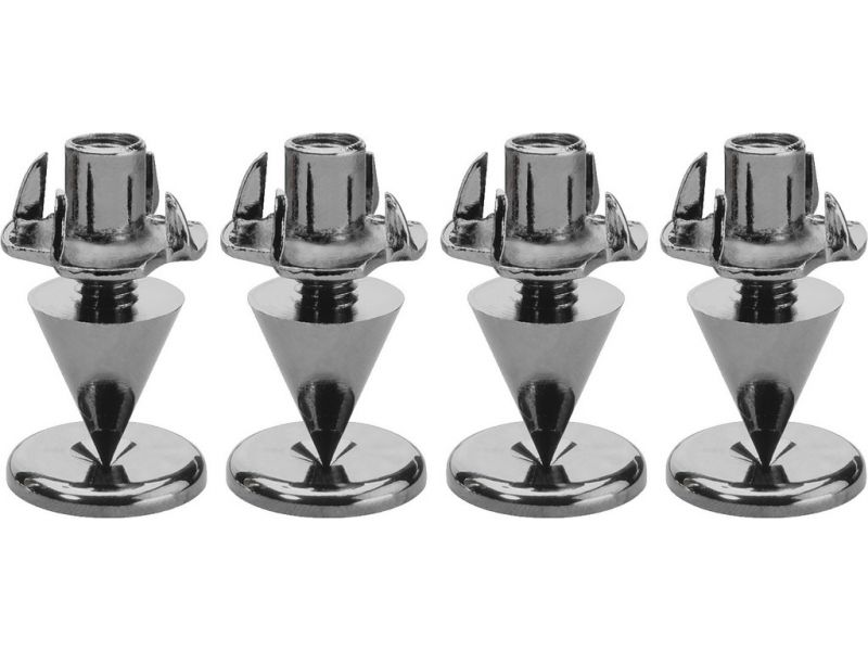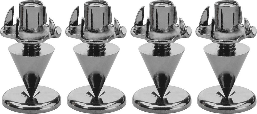 Sada reproduktorových hrotov (4 ks)) Slim verzia Nastaviteľné na výšku S podložkami a maticami Čierne pochrómované
