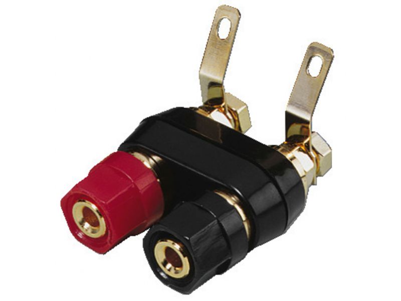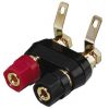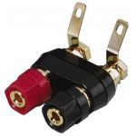 Reproduktorový terminál, pre zariadenia. Pozlátené kontakty Plastové krytky Na zaskrutkovanie aj na 4 mm banániky