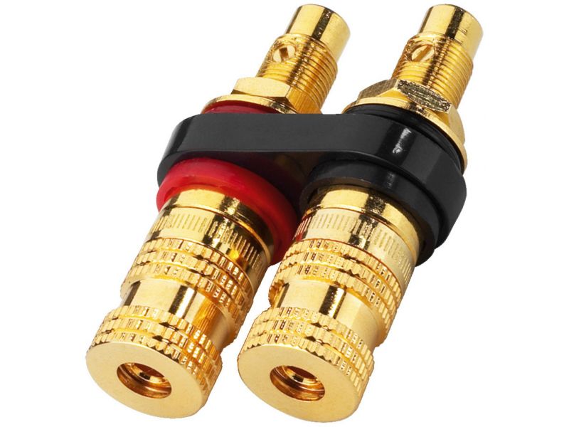 High-end reproduktorový terminál Pozlátené celokovové konektory Na priskrutkovanie Izolovaná inštalácia Na zaskrutkovanie aj pre 4 mm banániky