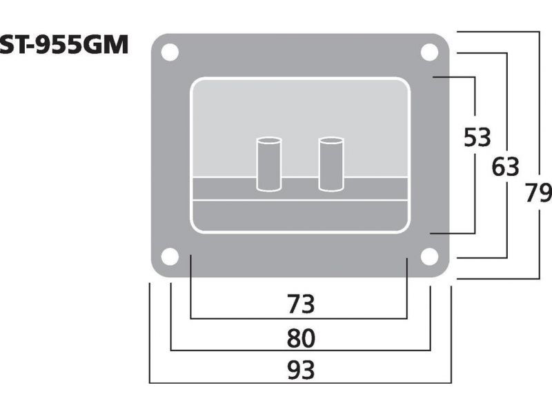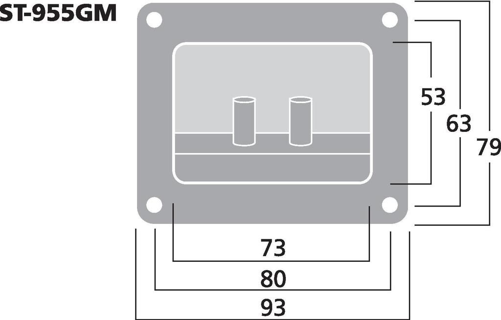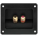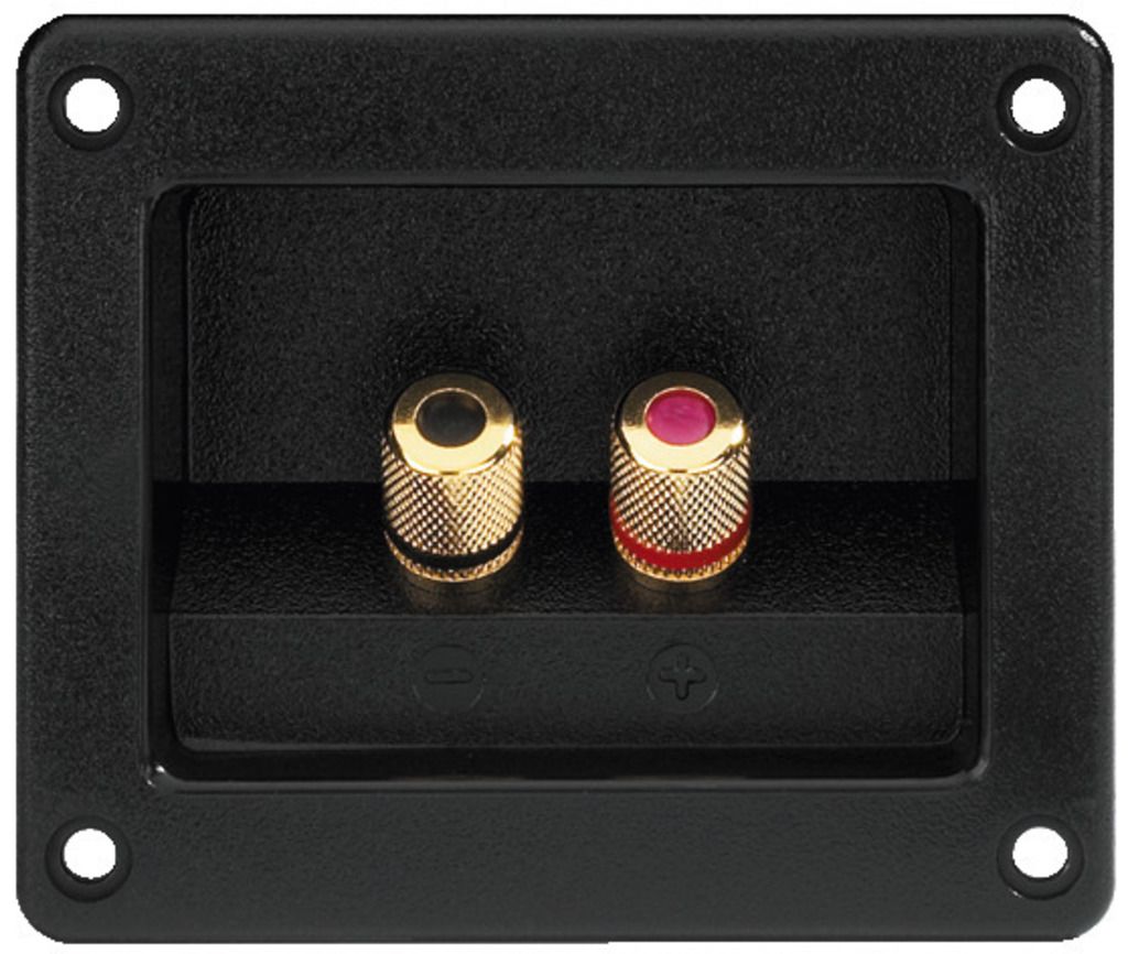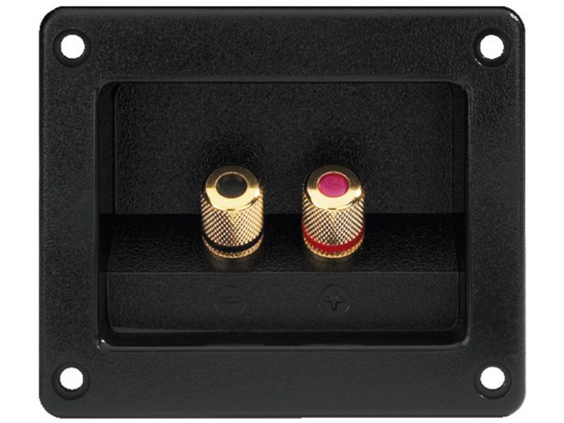 reproduktorový terminál Štvorec S pozlátenými celokovovými konektormi Na zaskrutkovanie aj pre 4 mm banániky Montážny výrez: 73 x 53 mm