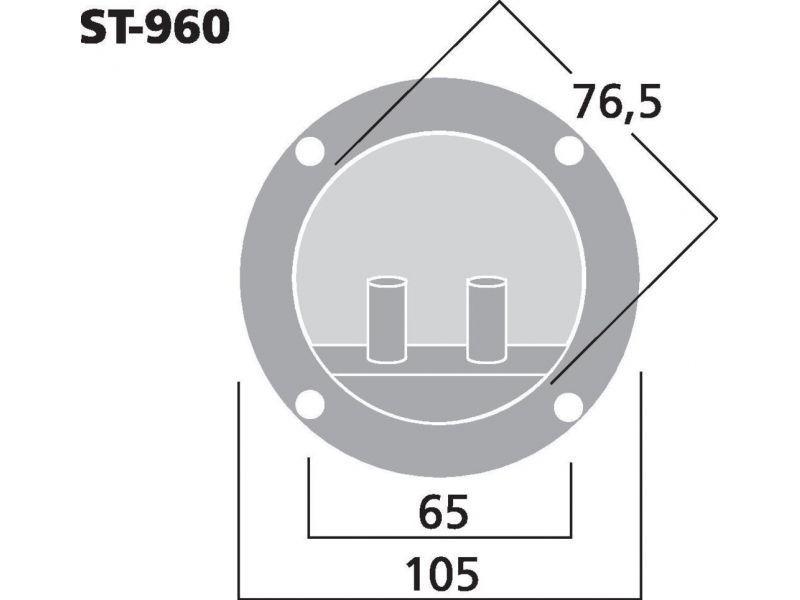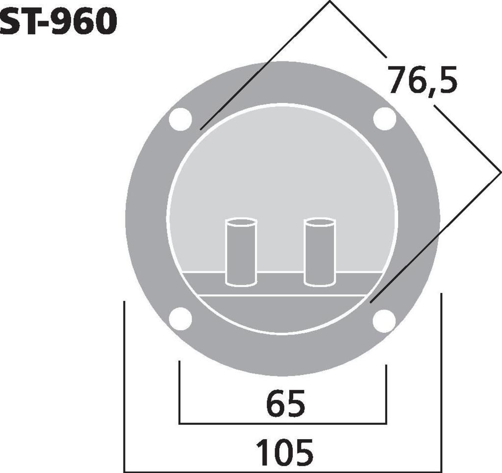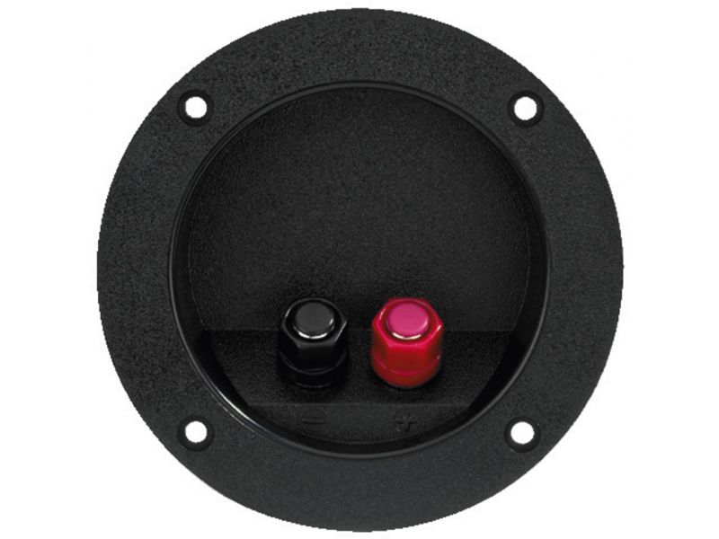 reproduktorový terminál S poniklovanými kontaktmi Na zaskrutkovanie aj pre 4 mm banániky Montážny výrez: Ø 76.5 mm