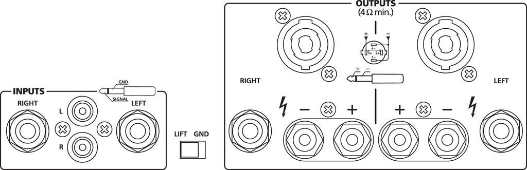 | Connections | 1 x 6.3 mm jack L/R 1 x RCA L/R 2 x SPEAKER 1 x 6.3 mm jack L/R 2 x pair of screw terminals |