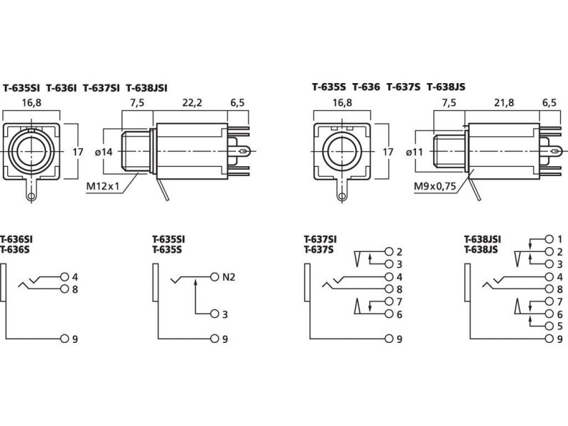 6.3 mm stereo panelová zásuvka Plastové telo Izolované S prepínačom