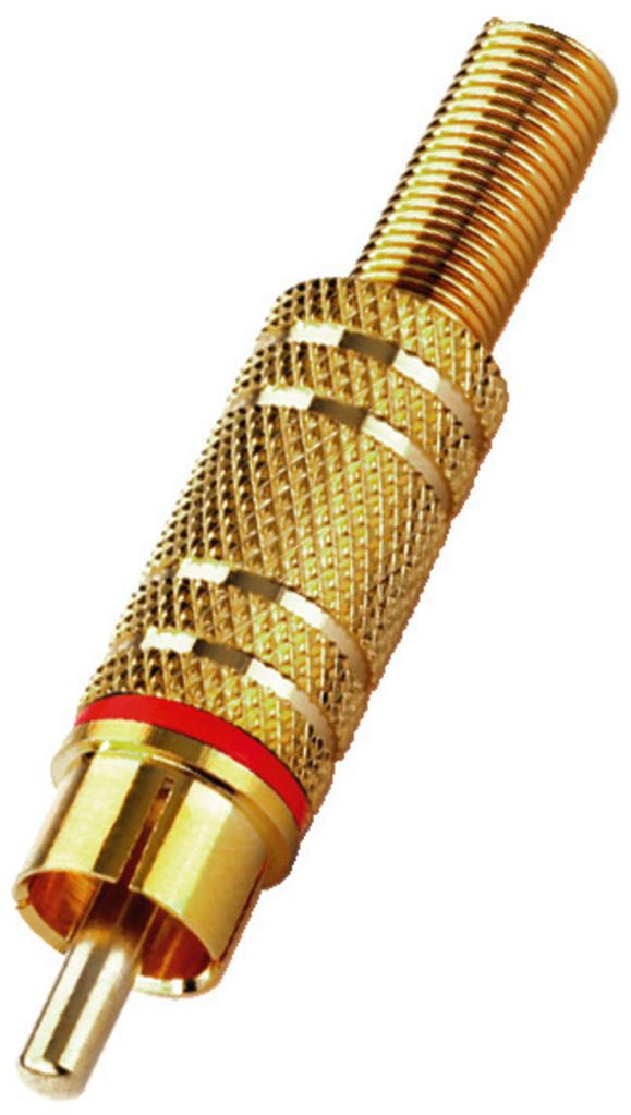 RCA samec Pozlátené telo S ochranou proti ohybu kábla Červené kódovanie Pre káble: Ø 5.9 mm