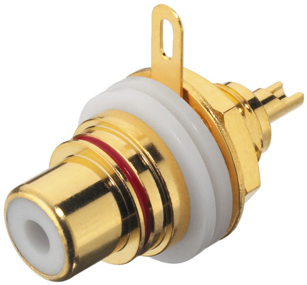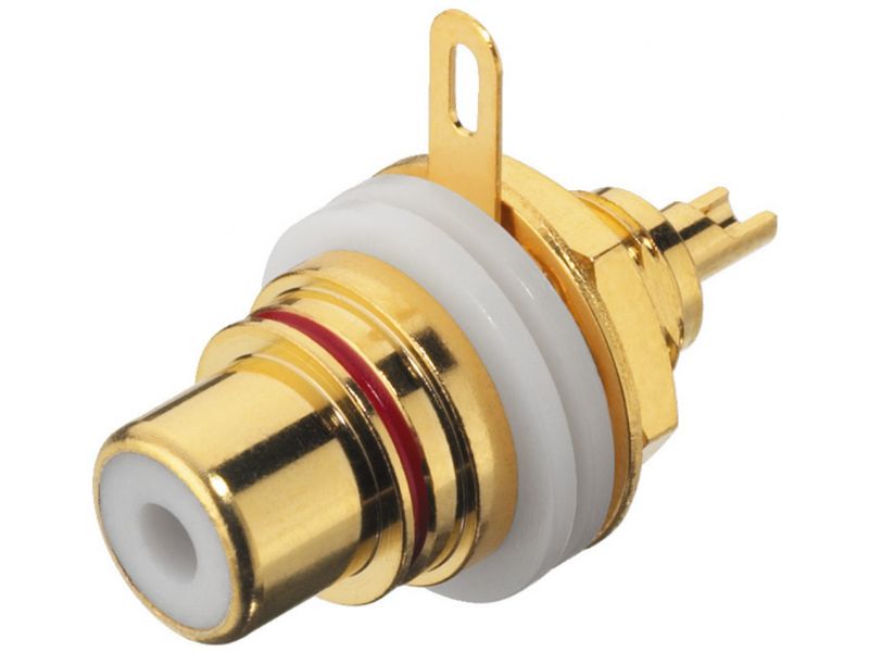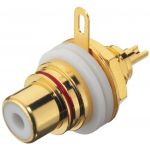 Dvojica RCA panelových samíc High-end verzia Pozlátené Červené a čierne kódovanie Priemer otvoru: Ø 9.5 mm