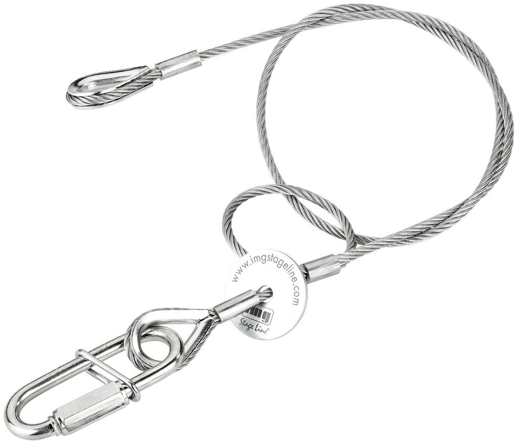 Bezpečnostné lanko, pre svetelné efekty v závesnej inštalácií. Saveking® Certifikované podľa BGV-C1 Dĺžka: 60 cm, priemer: 3 mm Reťazový rýchly uzáver (v súlade to DIN 56926) Pre jednotky s hmotnosťou do 20 kg (jednovláknové), do 30 kg, ak sú namontovan...