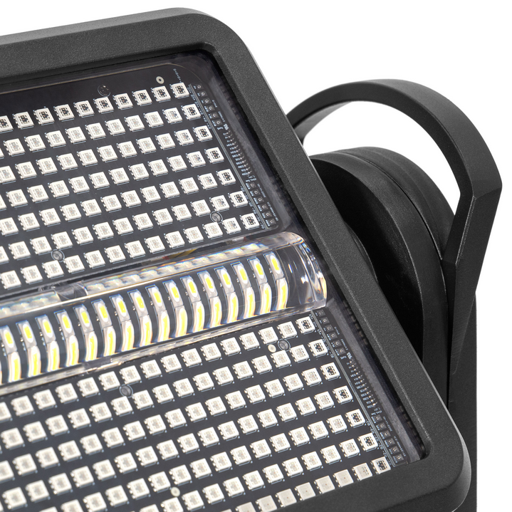 Wash and Strobe hybrid outdoor spotlight, evolite Thunder Kolor. DMX, Artnet and automatic programme controls.