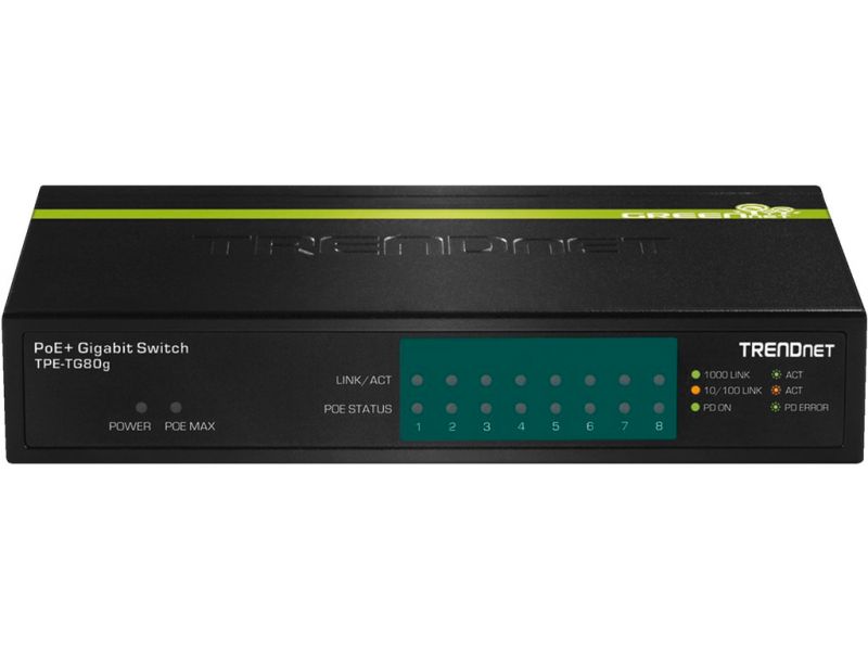 Gigabit Power over Ethernet switch 8 portov (RJ45) s 10/100/1,000 Mbp každý, 8 PoE/PoE+ porty Šírka pásma: 16 Gbps Výkon každého portu: 30 W (PoE+), 15.4 W (PoE) Celkový výkon PoE: 105 W Kompatibilný so štandardmi IEEE802.3 10BaseT, IEEE802.3u 100Base...