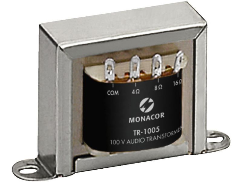 100 V vysoko výkonný audio transformátor Externý 100 V transformátor je potrebný pre zosilňovač alebo reproduktor bez nainštalovaného 100 V audio transformátora Je možné použiť každý z ponúkaných 100 V audio transformátorov