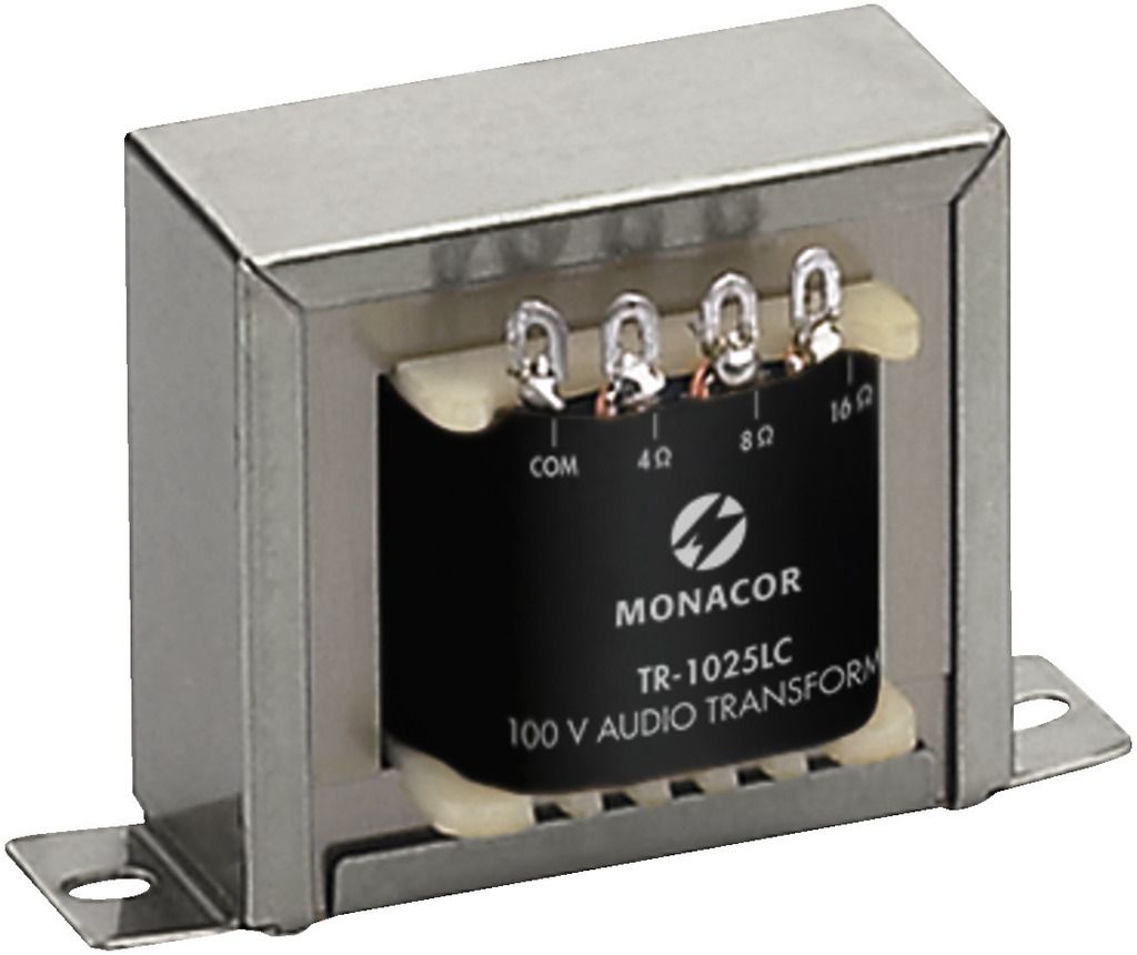 100 V vysoko výkonný audio transformátor Externý 100 V transformátor je potrebný pre zosilňovač alebo reproduktor bez nainštalovaného 100 V audio transformátora Je možné použiť každý z ponúkaných 100 V audio transformátorov
