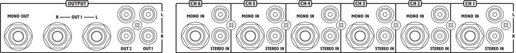 | Line input | 150 mV/50 kΩ (stereo), 6 x RCA L/R 150 mV/25 kΩ (mono), 6 x 6.3 mm jack, unbal. |