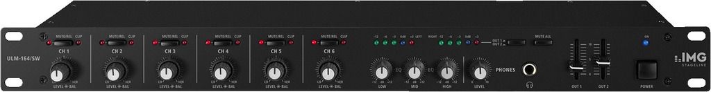 Univerzálny linkový mix, 6-kanálový. 6 stereo vstupy/mono vstupy 2 stereo výstupy, nezávislé od seba (master 1 cez Cinch a 6.3 mm samicu), 1 mono výstup 3-pásmový ekvalizér LED VU meter, prepínateľný pre oba výstupy Clip LED pre každý kanál Ovládanie vy...
