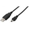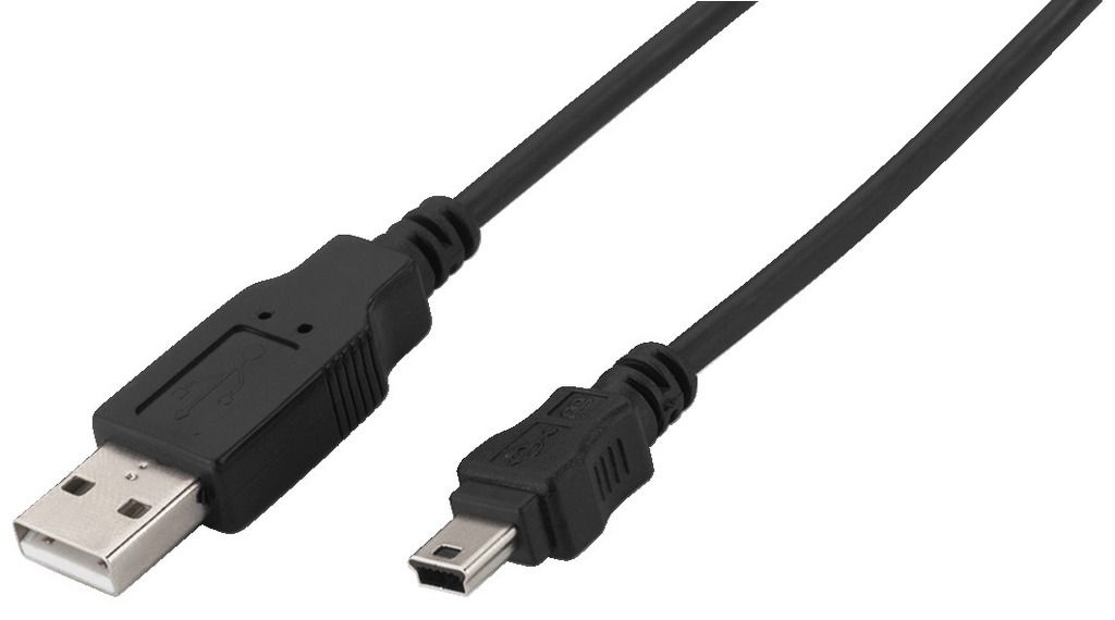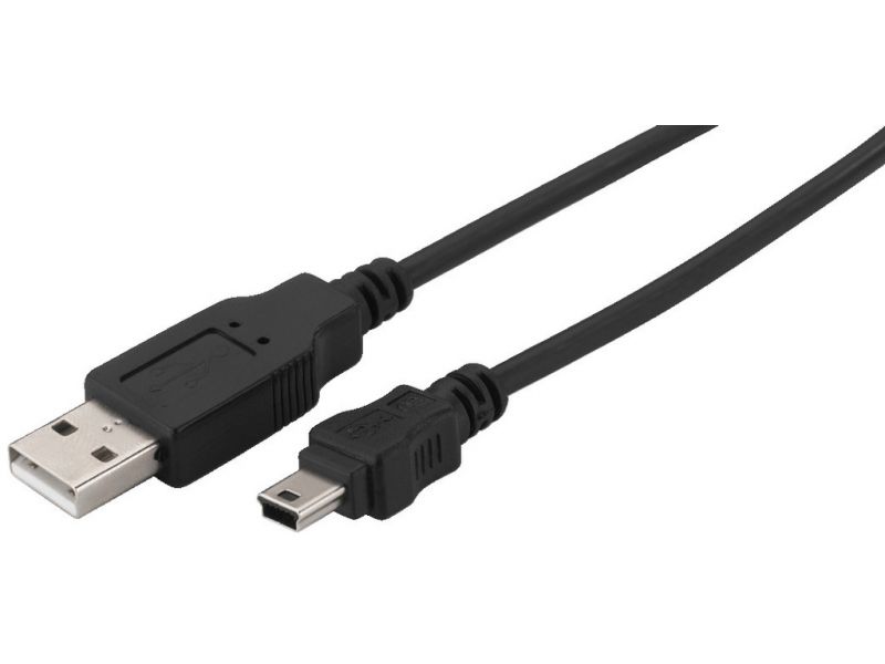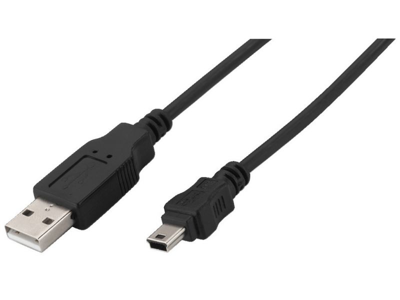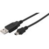 Kábel s USB konektorom, s mini-B USB konektorom (5 pinov) na USB konektor Typ A. Na pripojenie zariadení s mini-B USB konektorom do PC, napr. digitálne kameryČierny materiál kábla s tienením pre bezporuchovú prevádzku Dĺžka: 1.8 m