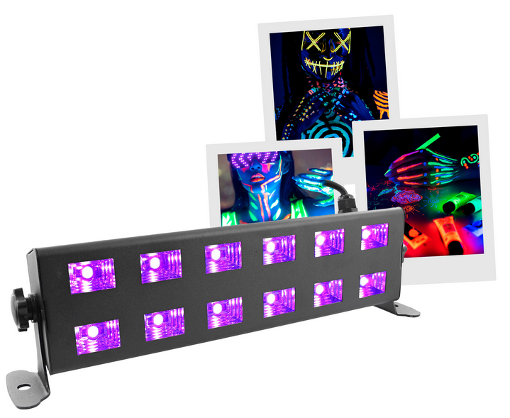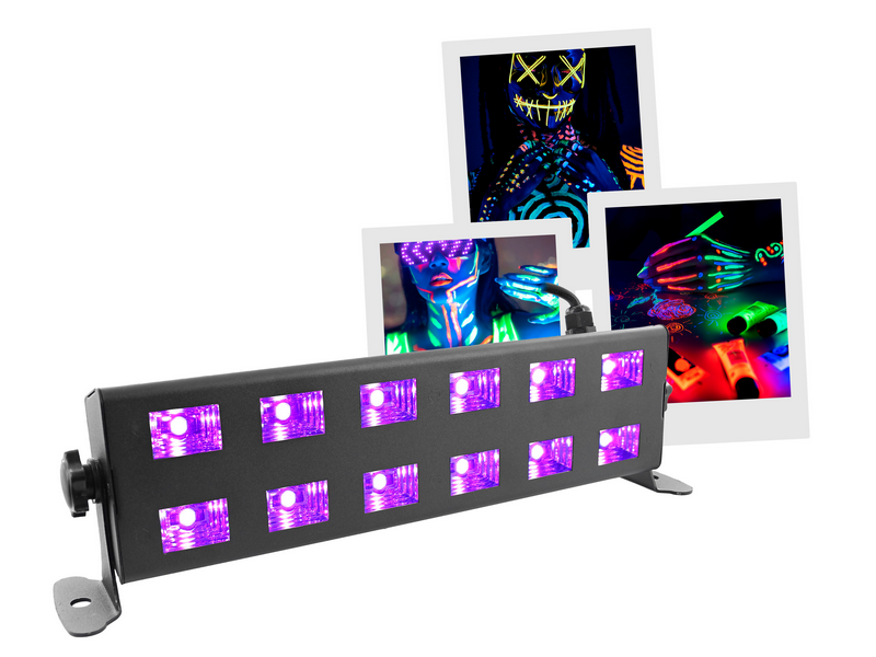 Black light projector, UV whose LEDs are 1W eachBoomtoneDJ UV LED BAR 12X1W black light bar12 UV LEDs of 1W eachON / OFF switchStatic mode only