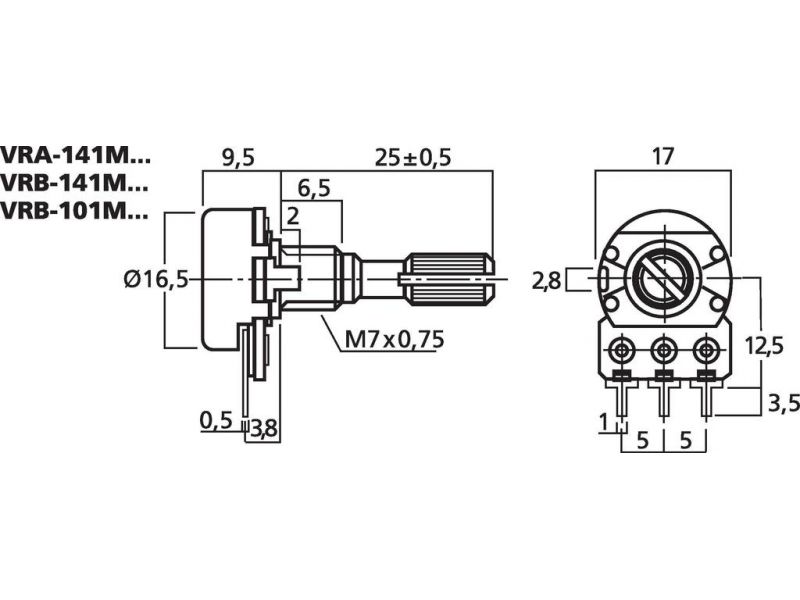 Potenciometer, mono, 10 kΩ Logaritmický 41 zarážok Drážkovaný hriadeľ 6 mm Pre 18-zubové zapínacie tlačidlá Upevnenie matice a spájkované spoje DPS