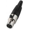 Miniatúrna XLR inline samica, 4 pólová Pozlátené kontakty Kovová verzia Ochrana proti ohybu kábla Pre káble: Ø 3.5 mm