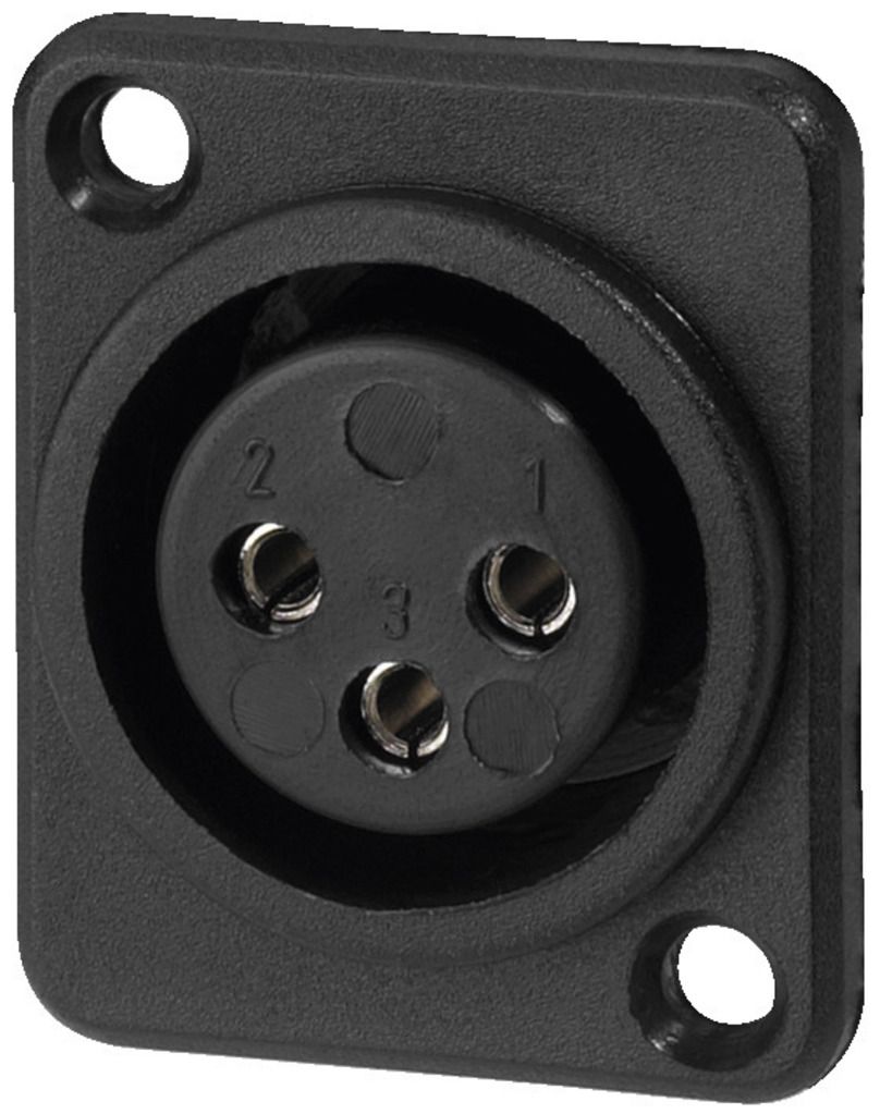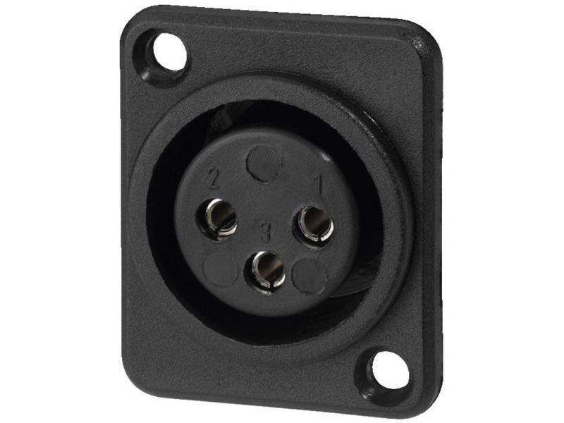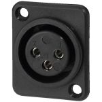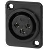 XLR panelová samica, 3 pólová Plastová verzia, čierna