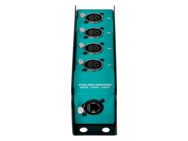analógový prepojovací box 4-kanálový s 3-pinovými konektormi XLR, navrhnutý pre spoľahlivú distribúciu signálu Audio/DMX. Robustný kovový rám poskytuje vynikajúce elektromagnetické tienenie a mechanickú ochranu, zatiaľ čo vnútorné zapojenie zaisťuje konti...
