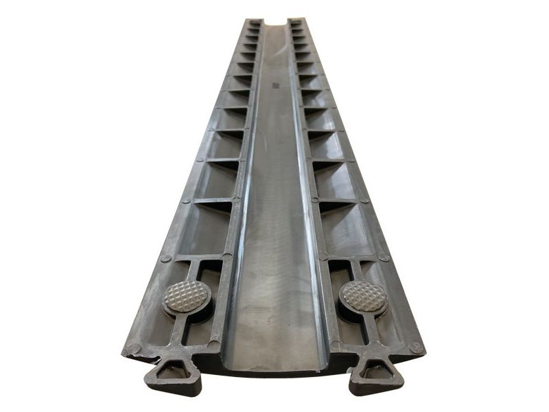 1-kanálový káblový most pogumovaný, vhodný na pojazd vozidlami Prírodná guma Protišmykové vrúbkovanie Vonkajšie rozmery: 905 x 135 x 20mm Vnútorné rozmery priehradky: 58 x 13 mm Maximálna nosnosť 2000 kg Stabilný a robustný spojovací systém