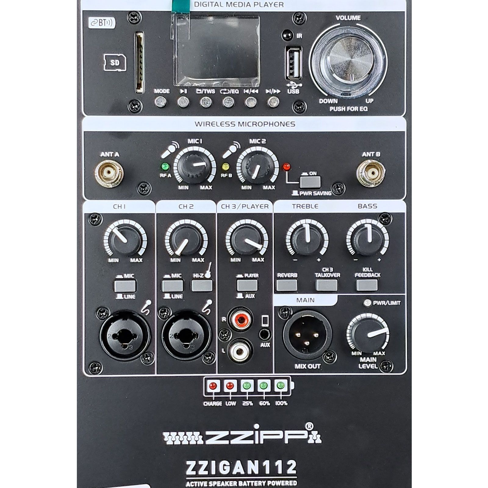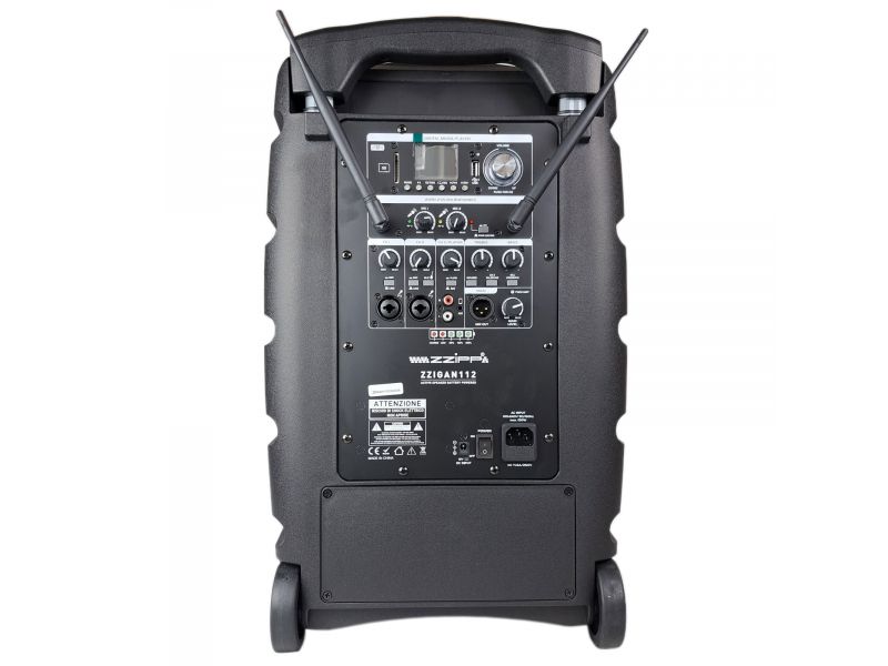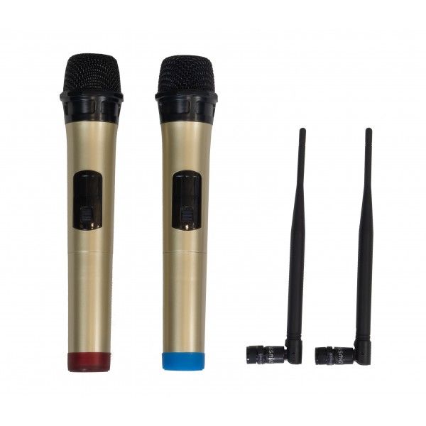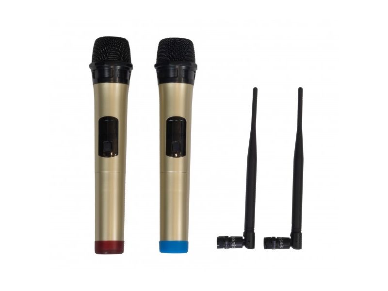 so vstavaným MP3 prehrávačom (SD a USB), Bluetooth prijímačom a dvoma ručnými bezdrôtovými mikrofónmi.