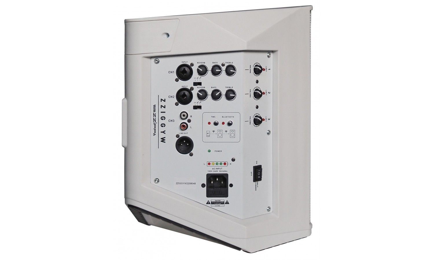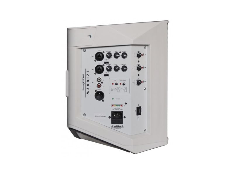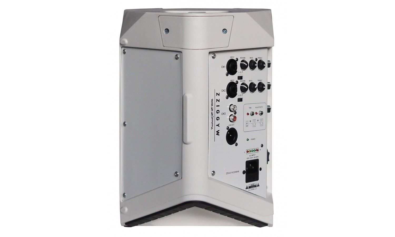 ZZIGGY je kompaktný a výkonný prenosný hudobný systém s výkonom 120 W v bielej farbe, ideálny na ozvučenie akéhokoľvek priestoru bez potreby napájania zo siete. Vďaka vstavanej lítiovej batérii (2×2550 mAh) prehráva hudbu celé hodiny, podporuje Bluetooth pripojenie a ponúka 2 univerzálne vstupy pre mikrofón, nástroj alebo linkový signál. Integrovaný DSP umožňuje pridanie nastaviteľného reverbu, čo oceníš najmä pri živom vystúpení s gitarou a spevom. Napriek hmotnosti len 8 kg poskytuje silný a čistý zvuk (SPL až 114 dB) v pásme 60 – 18 000 Hz, s trojicou výškových meničov a jedným 6,5" woofrom.